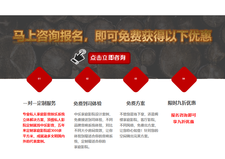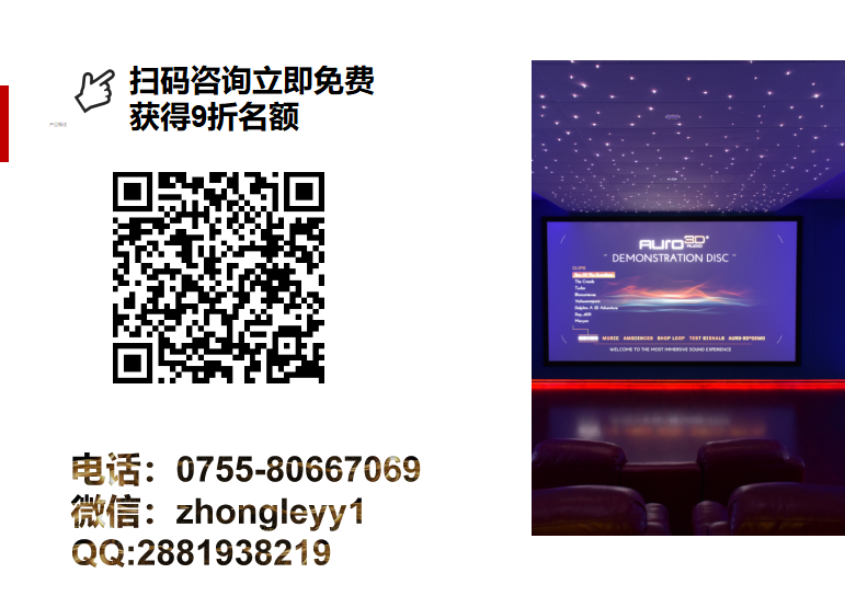 首頁 技術(shù)分享 價值3999的影院定制方案免費送! 價值3999的影院定制方案免費送! 2463天前 上一篇:私家電影院音箱選購技巧,看好了就下手! 下一篇:某頂級豪宅—AURO3D院線同步案例 熱門推薦 家庭ktv音響選多大的喇叭好? 2025-09-05 14:20 教你5招解決視聽室隔音問題 2021-09-01 17:02 立體聲與視聽室不為人知的小秘密 2021-09-01 16:34 夏季高溫,這樣使用影音室投影機是錯誤的! 2021-07-14 14:20 某頂級豪宅—AURO3D院線同步案例 2019-04-17 09:22