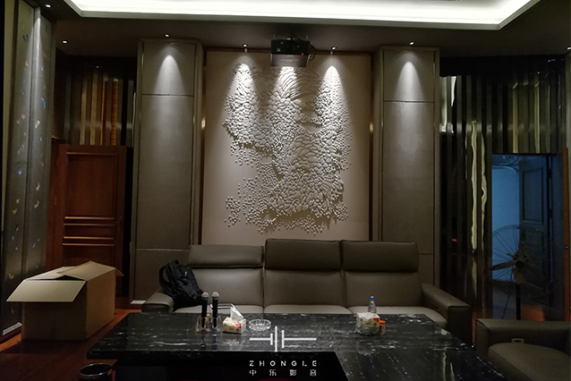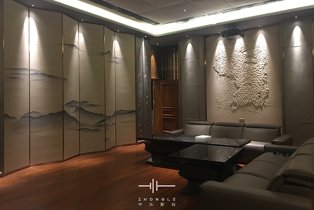 中樂案例展示 > 返回 深圳西麗水庫私家影院案例 案例簡介: 燈火闌珊處你有一枝獨秀 ——這間國畫中式風格視聽室,初見之間給人一種沉淀安心的感覺,散發出的恢弘氣勢令人駐足,全隱藏式影院設計,看電影,玩游戲,唱卡拉OK一個都不落下。 視聽室面積:10m*6.5m*4.2m 整體投入資金:私家影院整體資金投入160萬。 影音系統:AURO MAX、杜比全景聲、DTS-X 投影機:DP激光投影 功放:STORMAUDIO 32通道 音箱:ASCENDO*28只